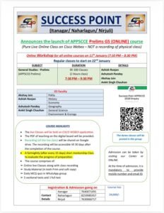 Success Point is set to begin its APPSCCE 2026 Prelims courses in both online and offline modes. The courses are designed to provide comprehensive syllabus coverage, regular guidance, and structured preparation.